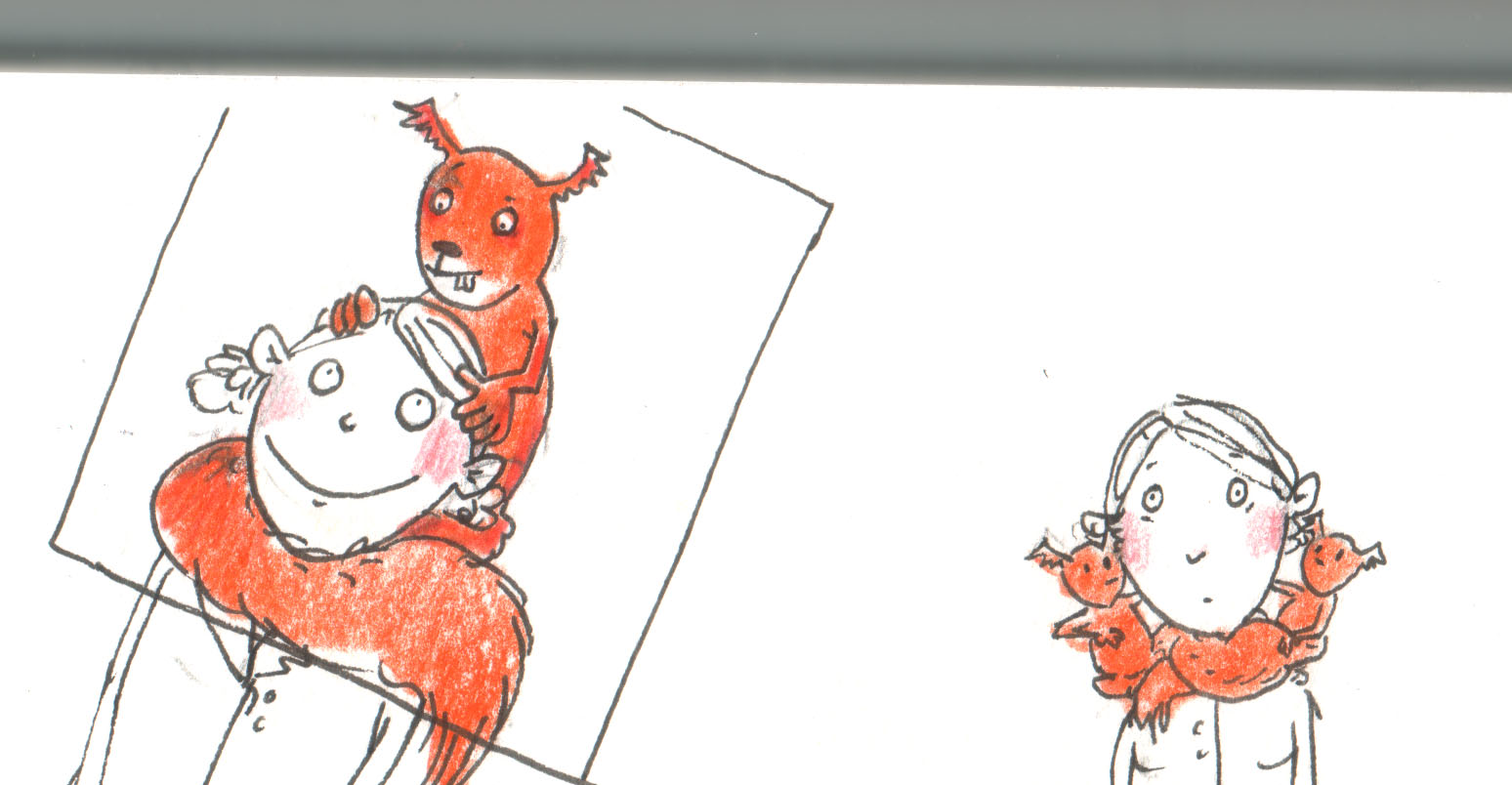 Links die Variante mit Rieseneichhörnchen (schwer zu finden), rechts die mit herkömmlichen Eichhörnchen, von denen bräuchte man allerdings zwei, um den Hals warm zu halten (schwer zu dressieren).