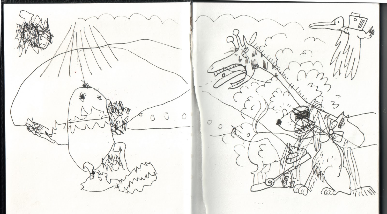 (ich zeige das nur her, weil seine Zeichnung meine rausreisst, ich gebe zu, nicht ganz meinen Anspruch an Qualität und Ästhetik einer Zeichnung erreicht zu haben.