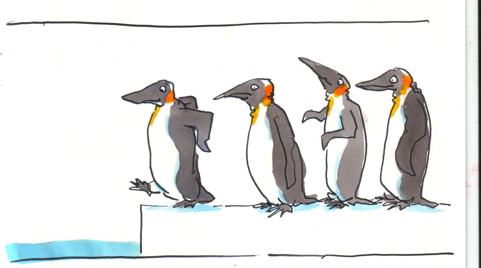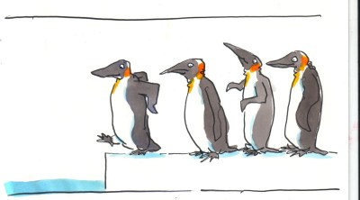 3. Ach so…wollte noch beruhigend sagen, WIR haben natürlich nicht angebadet….weiss auch nicht, wieso ich Pinguine im Frühling zeichne,…einfach so!