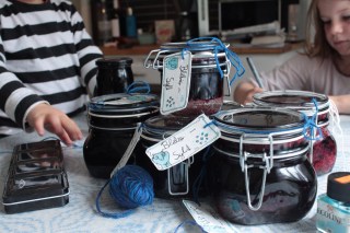 2 Kilo Blaubeeren gepflückt, Marmelade gekocht, Etiketten gemalt.
