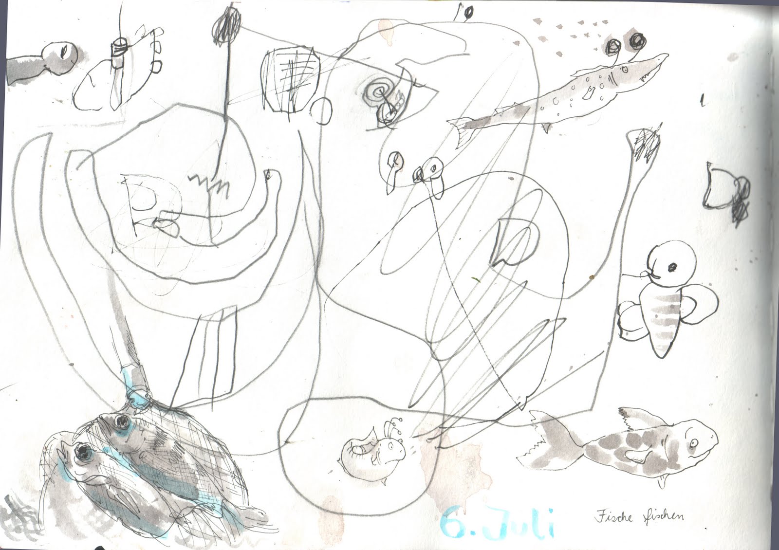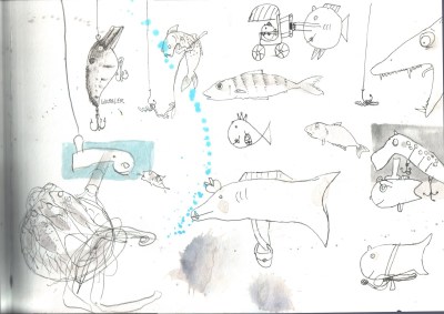 und die „Gar-Nicht-Anglerin“ Fische ins Buch gezeichnet.