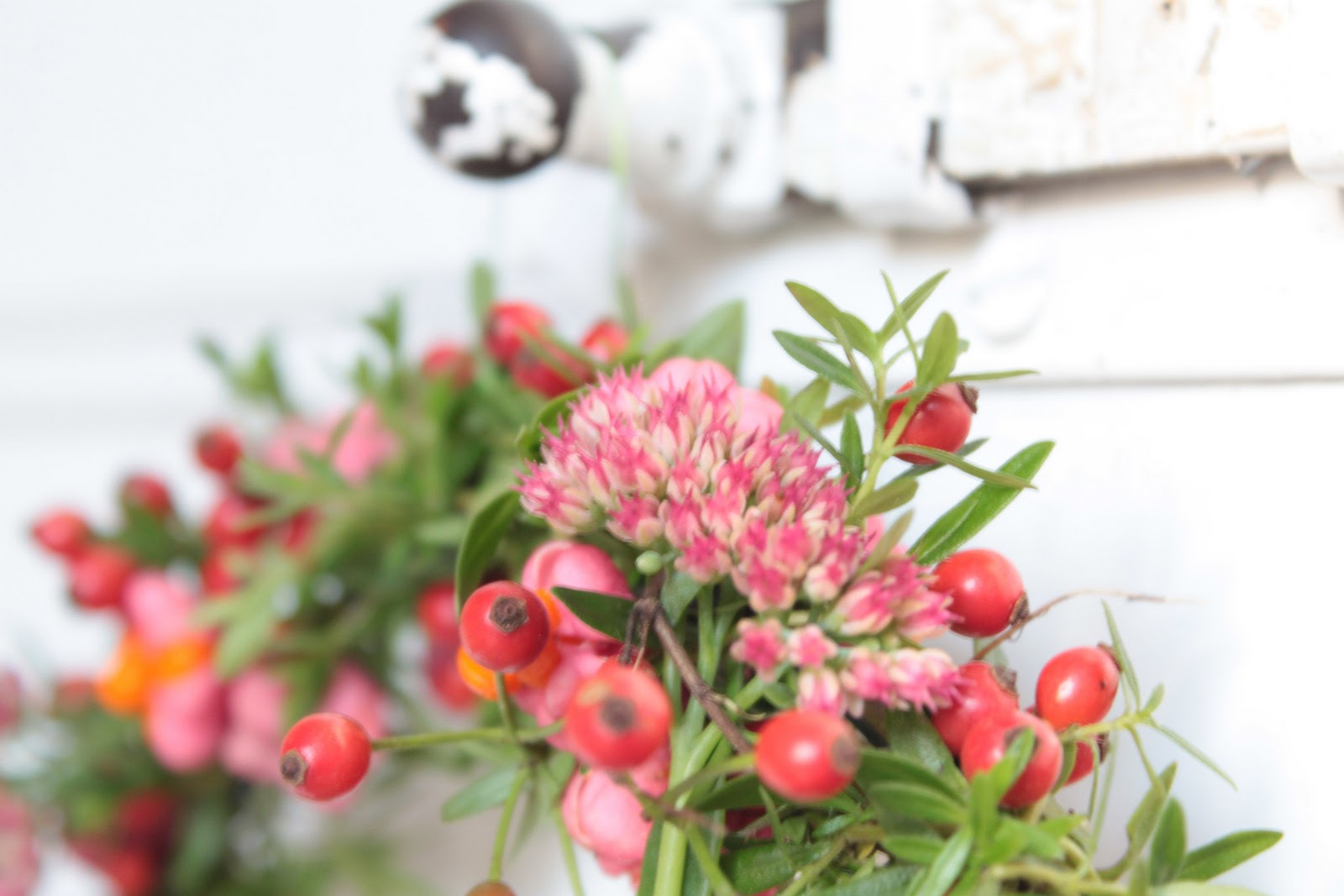Was für ein schöner Kranz! Und mal so gar nicht in den tristen braun-beigen Herbsttönen – wirklich wirklich schööön!