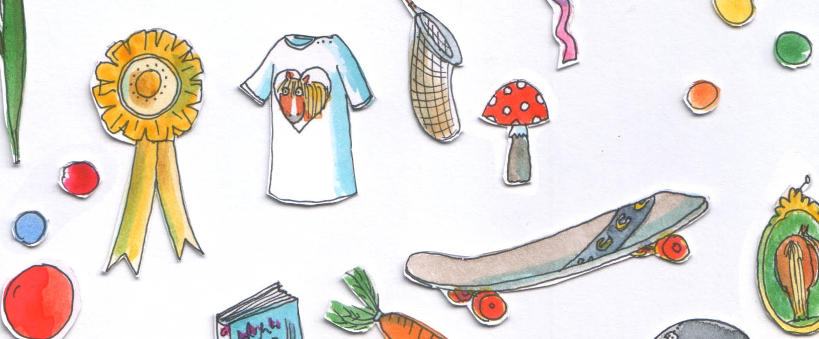 Ich sehe ein Skateboard, einen Kescher und Pferdekram …