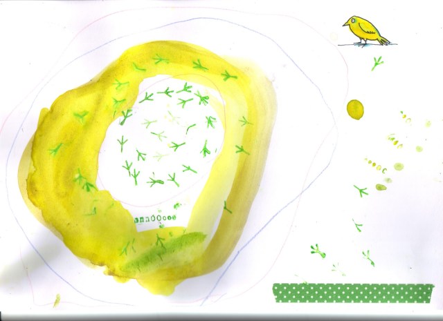 Wundervoll! Endlich Frühling! Irgendwo habe ich mal gesehen, dass Leute bunte, ungesponnene Woll-Flöckchen in einen Busch geknotet haben. Das sah nett aus und die Vögel haben sich daran für ihren Nestbau bedient – somit hatten sie dann sicherlich ganz bunte Nester. Ob sie auch nach Lieblingsfarben gehen? Vielleicht hatte die ein oder andere Vogelfamilie ja auch so ein leuchtendgelbes Nest… :)
