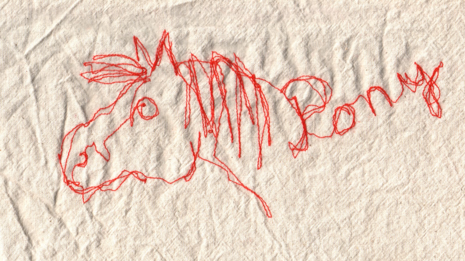 Roter Faden auf ungebügelter Stofftasche.
