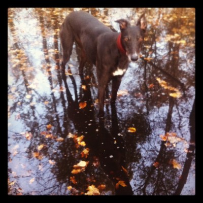 Was unaufwändiges: Daisy mit Herbstaugen in bunter Blätterpfütze.