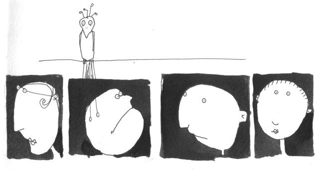 Toll, die Gesichter sind so reduziert und ausdrucksstark! Das erinnert mich an die Karikaturistin ANNA (Anna Regula Hartmann) – kennst du sie?