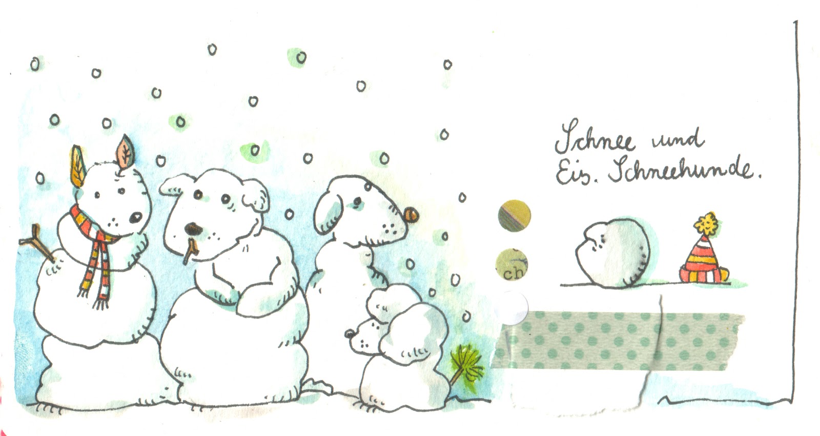 Ach ja! Die Schneehunde sind das Januar- Kalenderblatt und somit die Januar-Postkarte!