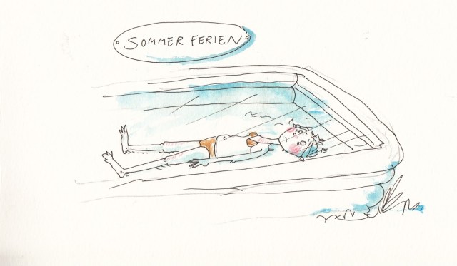 Gute Idee! Aber hier müßte erst mal die Eisschicht überm Planschbecken weg…und Ferien sind noch in weiterweiter Ferne *seufz*. Solange freue ich ich über Deine wunderbaren Zeichnungen und wünsche Euch tolle Sommerferien.