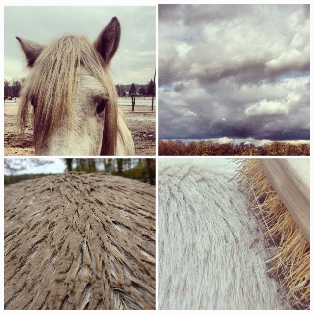 Wer hat denn die Vögel so schön am Himmel aufgefädelt? Und ich schließe mich Katjas Vermutung an – vor dem Wälzen war ganz bestimmt nach dem Putzen. Oder? Schimmel haben da so ein ganz bestimmtes Gen, dessen Ausprägung mit der Helligkeit zunimmt. Manchmal vererbt es sich auch farbunabhängig. Mein lieber alter Kerl damals hielt sich definitiv auch für einen Schimmel, aber zum Glück und gottseidank war er dunkelbraun – im Zwielicht eines Regentags sah man rein nix vom Schlamm.