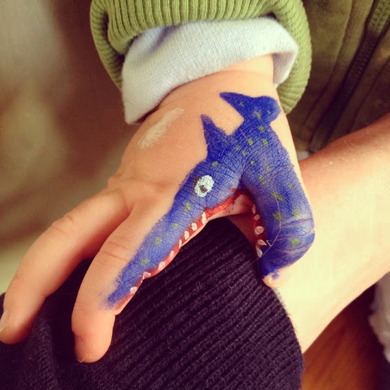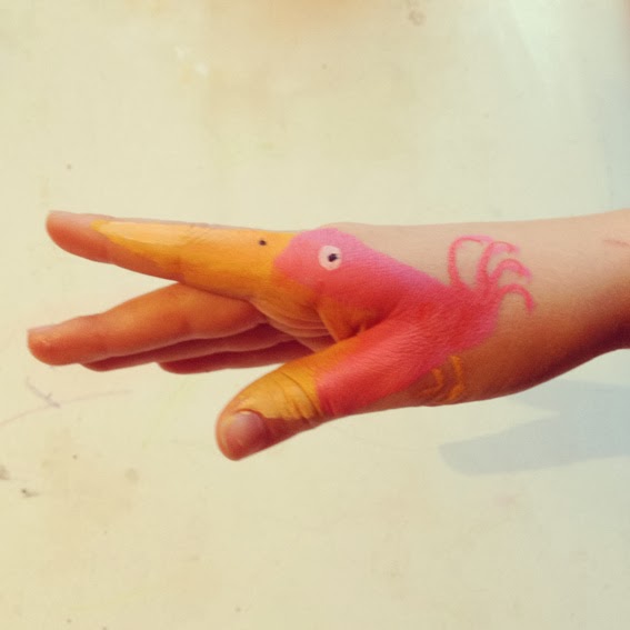 Letzten Samstag ganz früh (!) angefangen, Hände mit Faschingsfarbe zu verschönern.