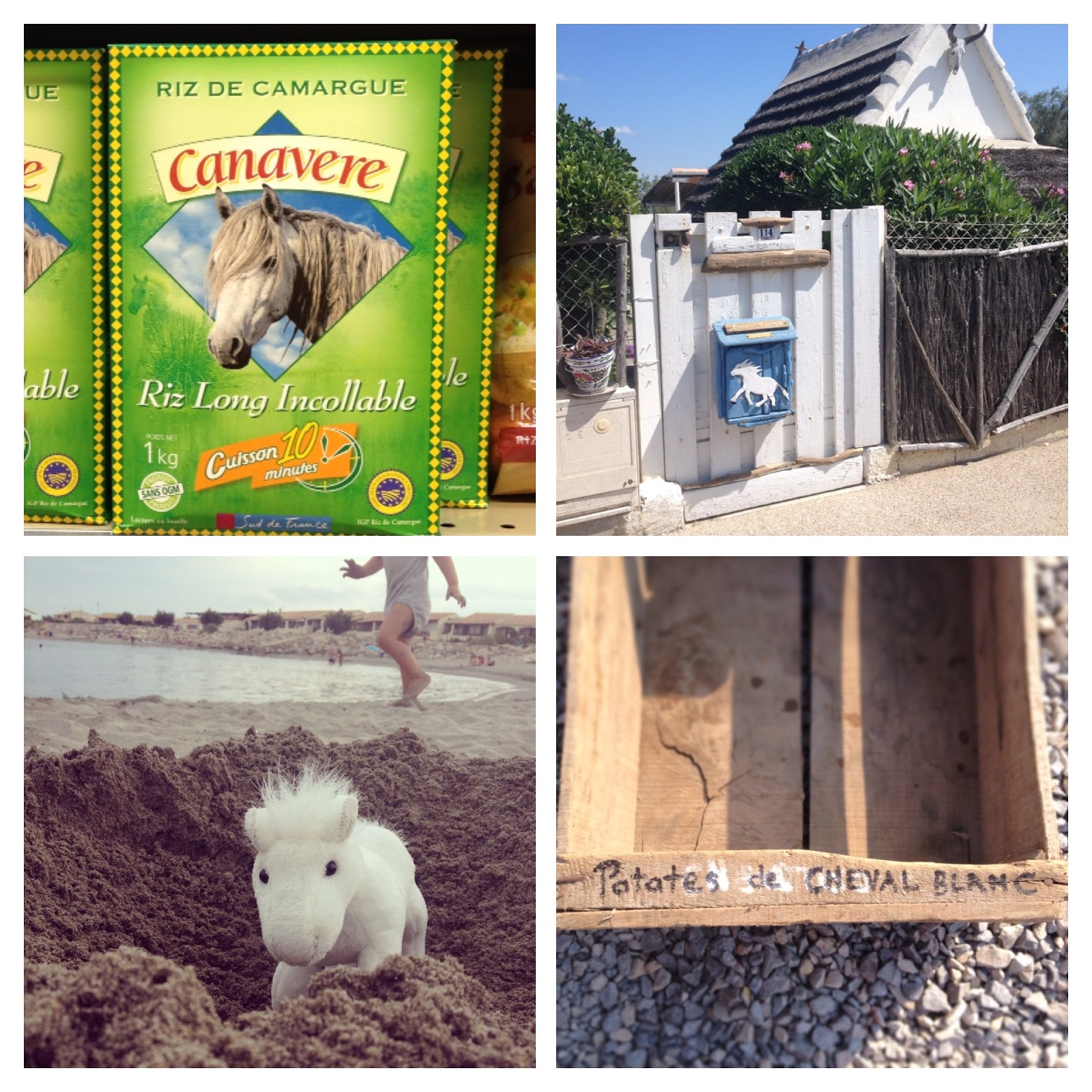 1 auf der Reispackung.   2 auf dem Briefkasten.   3 im Sand.   4 in französisch.