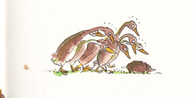 Gestern Abend haben die Enten einen Igel aufgeweckt.