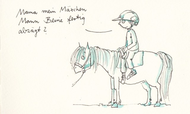 […] Eine meiner Lieblingsgeschichten, deshalb kennen die sicher schon viele. Egal. Dem Shettywallach Mäxchen, der früher in unserer Herde stand, wurden die Hufe vom Schmied gemacht. Als er fertig war, nahmen wir ihn mit, zu einer kleinen Spazierrittrunde. Nils war knapp zwei und fragte nach einer Weile: „Mamaaaaa? Mann mein Mäxchen Beine fertig appesägt?“ Mäxchen ist übrigens ausgewandert und lebt jetzt glücklich auf Gotland! […]