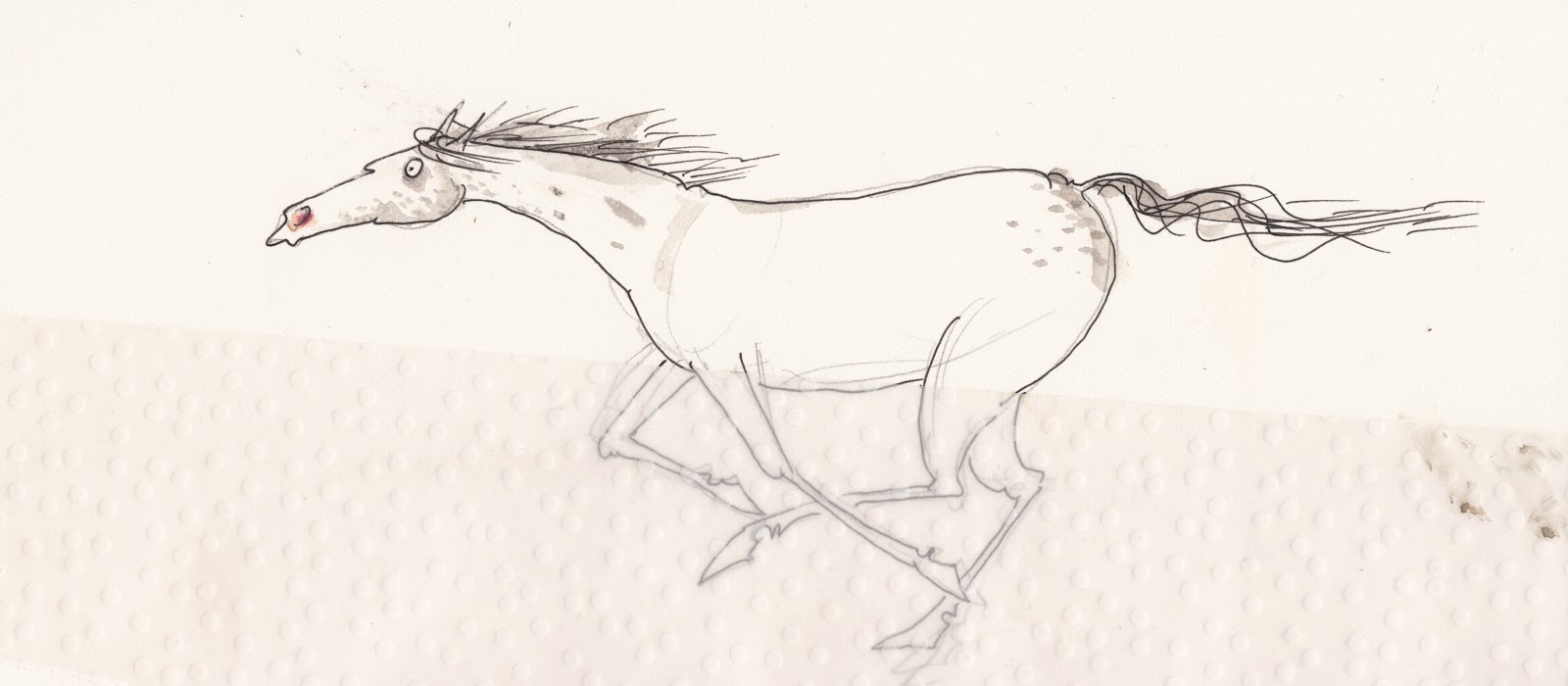Ach, warum, ich habe als erstes gedacht, das Pferd läuft durch's Wasser…einen Fluss oder so, auf der Flucht vor…. oder vielleicht steht auch jemand Begehrenswertes auf der anderen Seite?