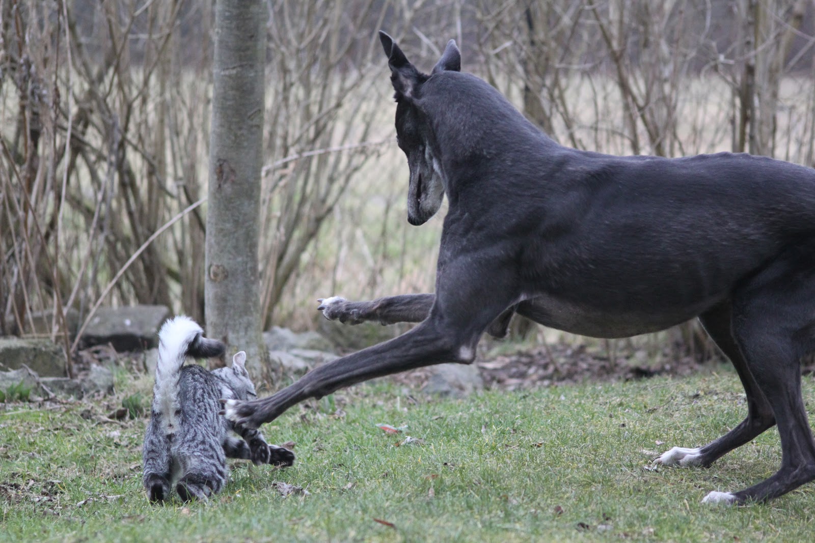 7. Oh, ihr schlaksigen Hunde, die ihr so schmal seid, dass ich manchmal denke, ihr seid in 2D, und von vorn oder hinten gesehen seid ihr einfach verschwunden! Das muss ein unglaublicher Anblick sein, wenn Katze und Windhund miteinander spielen. Liebe Kerle, die Großen wie die Kleinen.