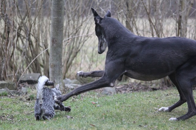 Das unsere Hunde (beide!) eine Katze in Haus und Garten tolerieren,