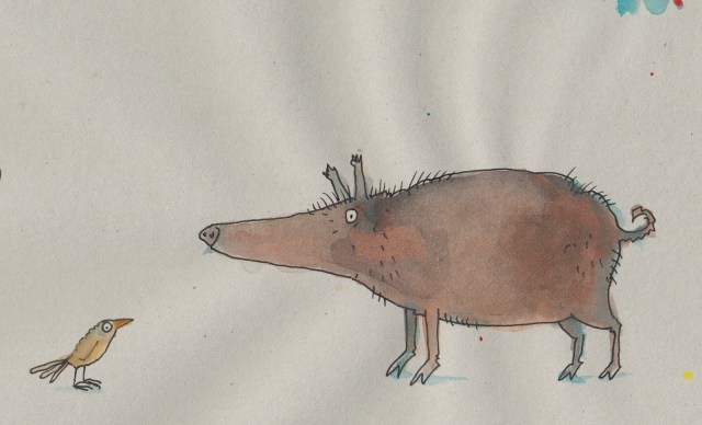 ich glaube, das Schwein will auch ein Fisch-Shirt… ja, ganz bestimmt, so wie es schaut…