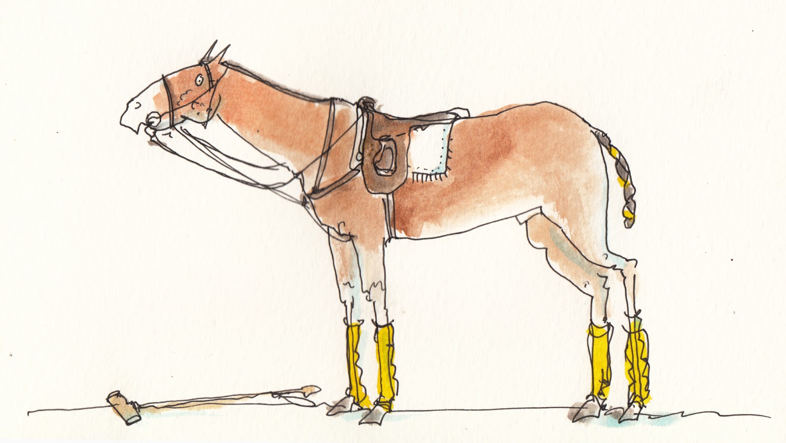 Man trägt Trikots, die Pferde haben Stutzen an,