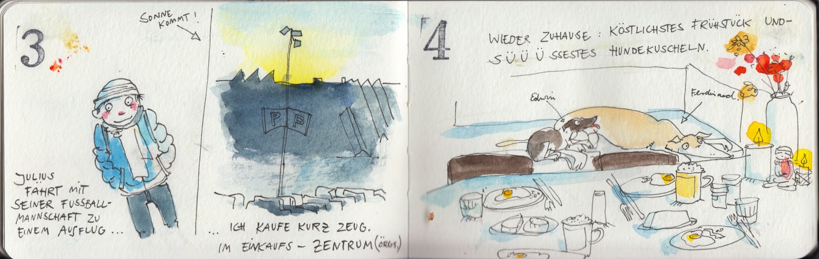 Ein Tag, diese schönen Zeichnungen, der Humor der immer blitzt – wunderbar anzuschauen und zu lesen! Danke! Liebe Grüße, Martina