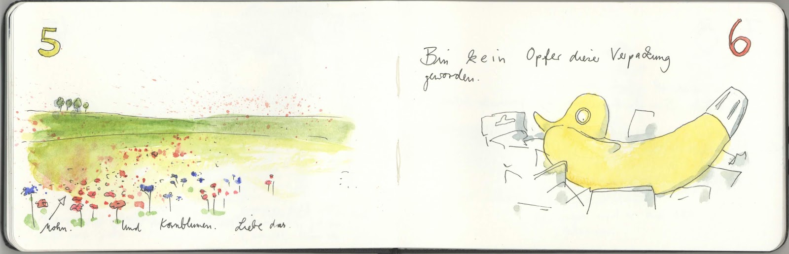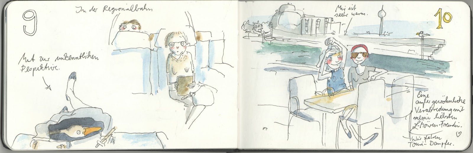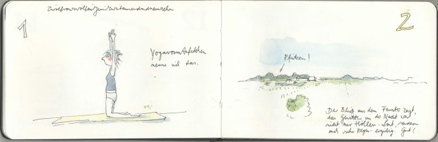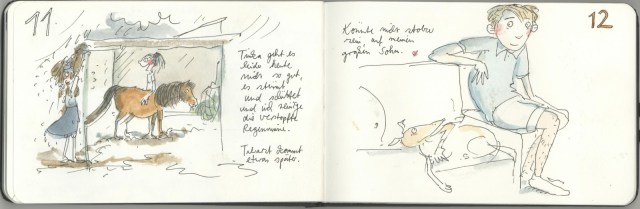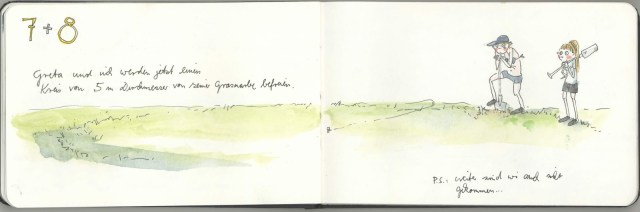 Ehrlich gesagt, habe ich dann auch gar nicht fertig gezeichnet, denn im Nachmittag und Abend war das Hundertfache von dem an Bildern und Erlebnissen drin, was ich dann gerade eben in drei Stichpunkte-Bilder gequetscht habe.